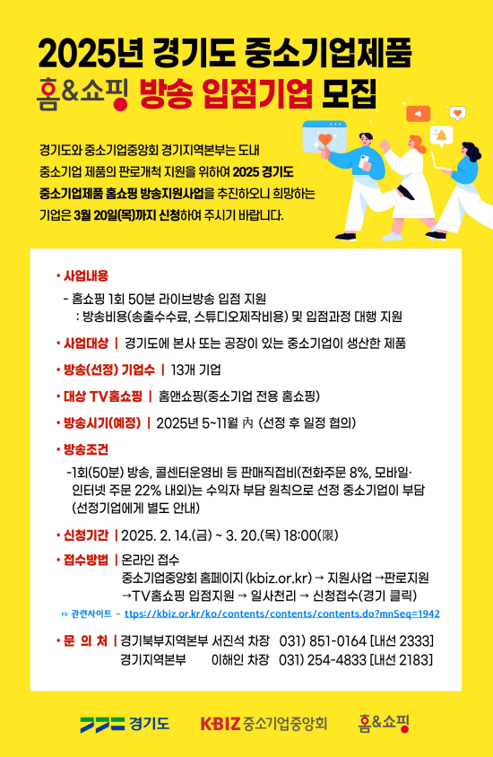 2025년 경기도 중소기업 제품 홈&쇼핑 방송 입점기업 모집