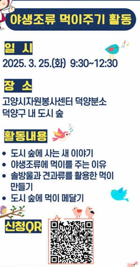 자봉센터 '야생조류 먹이주기 활동' 봉사자 모집