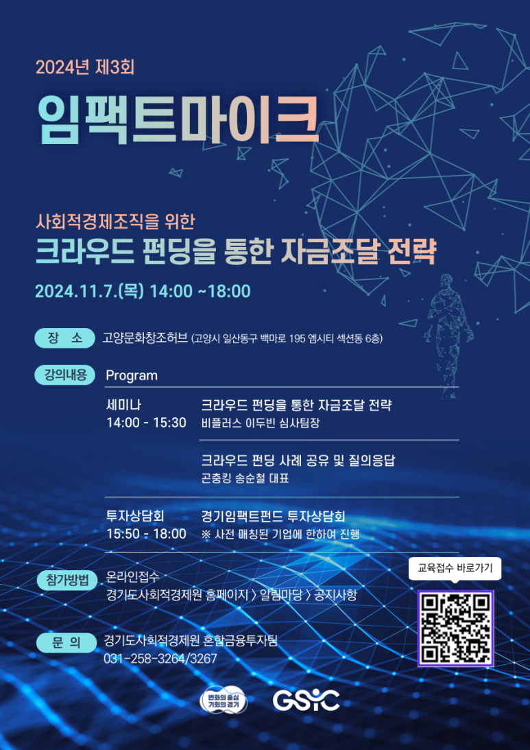 [경기도사회적경제원] 제3회 임팩트마이크 행사 안내(11월 7일, 14시)