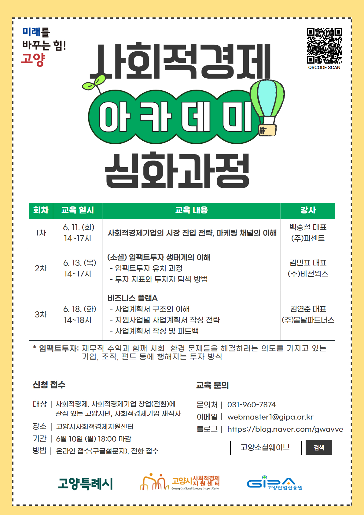 2024년 고양시 사회적경제 아카데미 심화과정 1기 수강생 모집(~6월 10일)