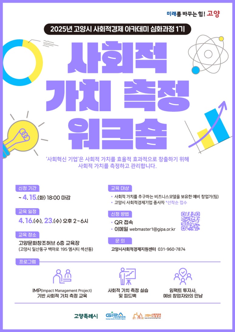 25년 고양시 사회적경제 아카데미 심화과정 1기 (사회적 가치 측정 워크숍) 수강생 모집(~4월 15일)|