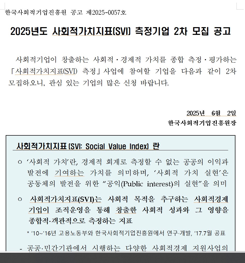 2025년 사회적가치지표SVI 측정기업 2차 모집 공고.hwp (146.5K)