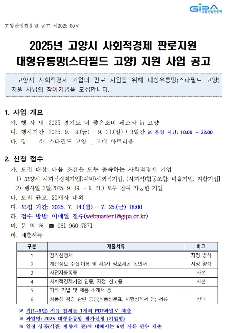 2025년 고양시 사회적경제 판로지원 대형유통망(스타필드 고양) 사업 참여 기업 모집